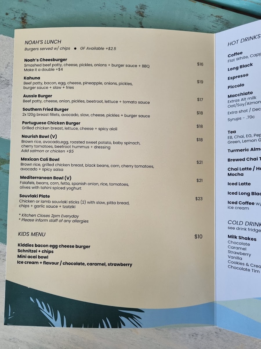 The menu features a tempting selection of breakfast and lunch options designed to satisfy every palate. Start your day with the Acai Bowl or indulge in the savory Bacon & Egg Roll. For those craving heartier fare, the Kahuna Burger bursts with flavor, pairing a juicy beef patty with pineapple and cheese. Kids are not forgotten, with fun meals like the Kiddies Bacon Egg Cheese Burger.
